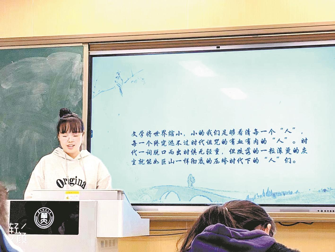 无独有偶。该校大二学生刘禾禾也是受儿时恩师的影响,种下了教师梦。她出生在内蒙古自治区巴彦淖尔市乌拉特中旗德岭山镇一个普通家庭,爸爸是农民,妈妈在镇上经营一家小面馆。“儿时的老师是我见识外面世界的窗口,让我燃起了学习兴趣,也成就了我。”生长在小镇的刘禾禾说,自己从小深刻地感受到区域教育资源的差距,所以立志长大后返乡从教。2021年,她顺利成为华中师大首届文学院汉语言文学专业“优师计划”学生。