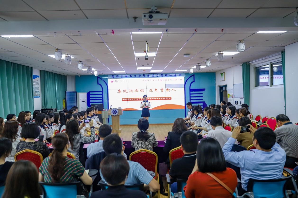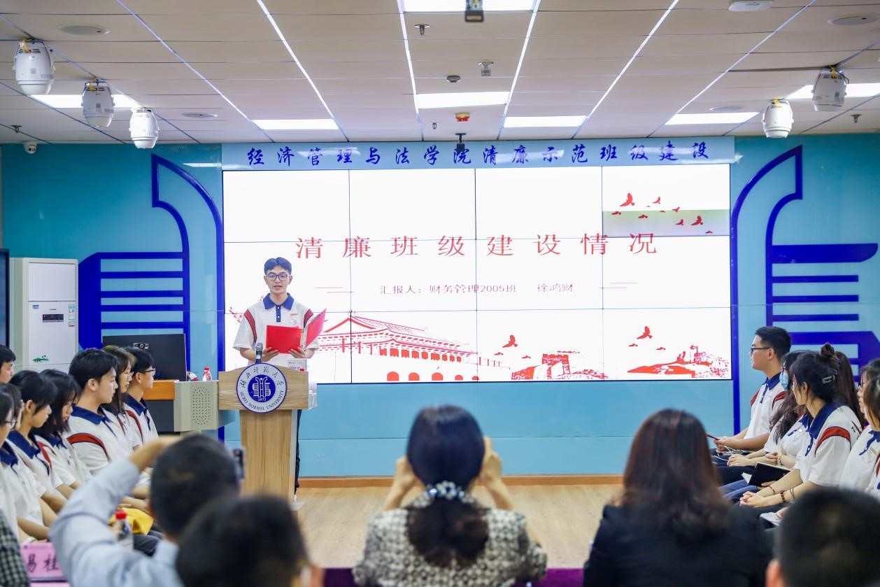 树立榜样标杆,精准对标对表,夯实建设基础。为扎实推进清廉班级建设,促进廉洁文化进班级、进头脑,充分发挥优秀班级的示范带动作用,经申报、推荐和审核,学校立项16个清廉班级示范建设项目,每个项目拨付1000元专项建设经费。在推进示范项目建设过程中,开展了主题为“廉风润班级,正气育新人”的清廉班级示范观摩活动,由财务管理2005班进行展示。该班班长从清廉班级建设基础、班务公开、已开展活动以及建设计划等四个方面汇报了清廉班级建设基本情况,班级通过知识竞答、课本剧《金色的鱼钩》表演、学唱清廉歌曲《一路清风》、学习心得分享等形式开展清廉文化学习宣传教育,用讲、答、演、说、唱的形式为其他班级开展清廉班级建设工作树立标杆、提供借鉴。