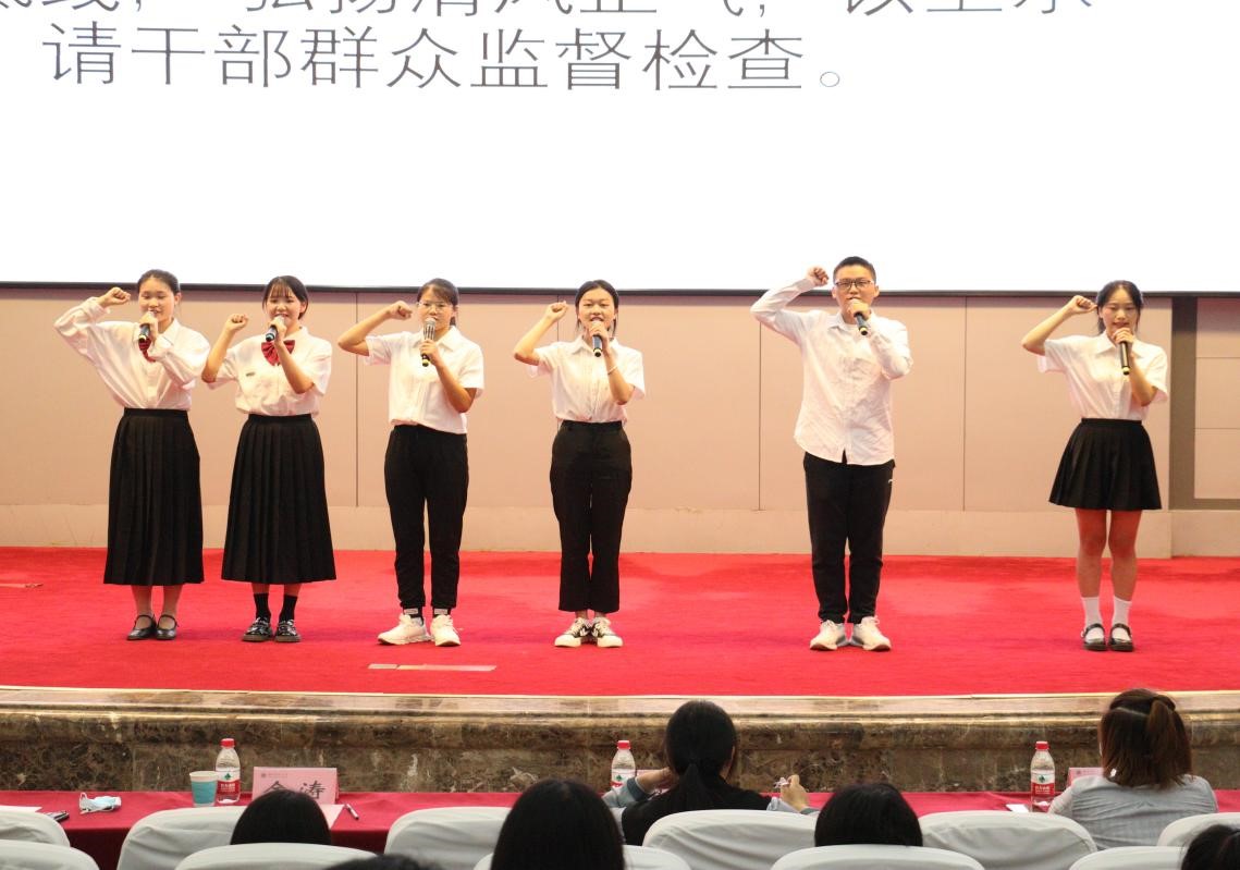重视经验总结,表彰先进典型,凝练推广范式。为深入总结工作成果和创新经验,凝练形成可推广的建设规范,持续增强师生纪律意识,持续改善校风教风学风,为学校高质量发展提供坚强的纪律作风保障,学校举行了2022年清廉班级评选展示活动。16个获评立项班级通过PPT演讲、节目表演、文化展示等多元形式呈现清廉班级的组织制度、创新特色、班级文化等,从政风清廉、班风淳朴、学风优良、班干尽责、同学互助等五个方面汇报建设培育的成绩成效。部分班主任还以现场指导、录制视频等方式为班级助力。最终评选出音乐学院2006班等6个班级获得清廉班级示范建设“优秀项目”,同学们积极学廉践廉,激发向上向善、清风正气的社会文明新风,以实际行动献礼党的二十大胜利召开。