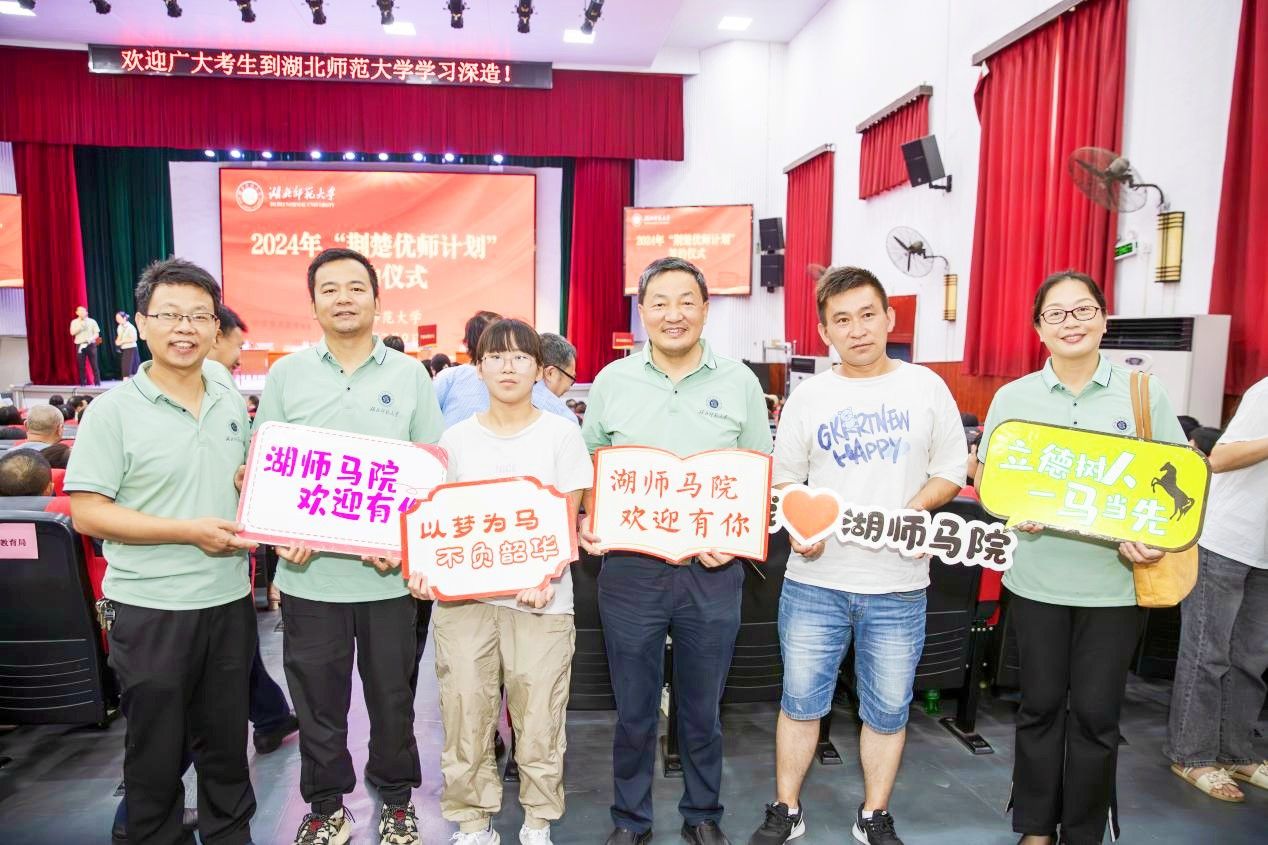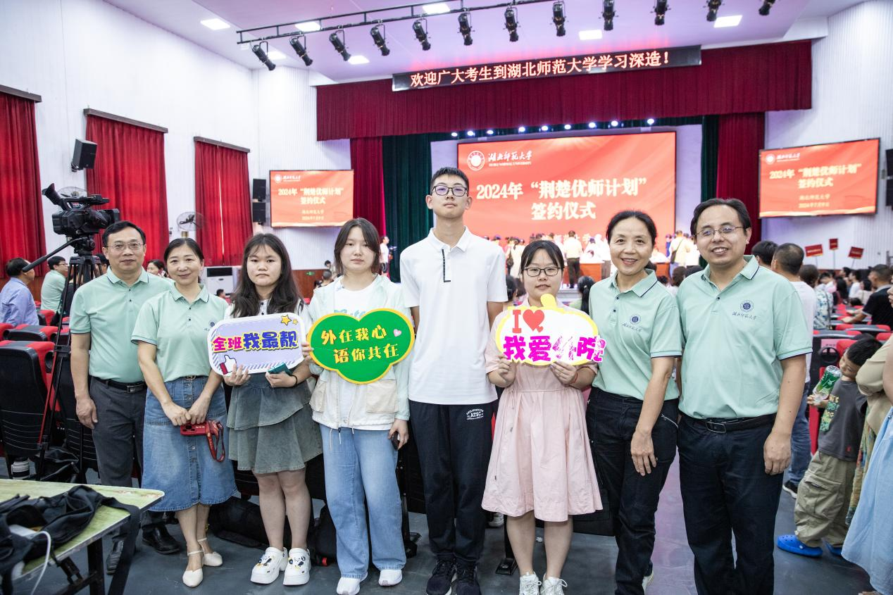 签约仪式现场,雷儒金对高考中取得优异成绩、即将被湖师录取的200名新生及家长表示祝贺,并对长期给予学校建设发展关心与支持的各地市州教育局表示感谢。他表示,希望进一步加强与各地市教育局的沟通与合作,大力支持“荆楚优师计划”项目的实施;同时,希望各培养单位高度重视“荆楚优师计划”师范生培养工作,切实保证人才培养质量。此外,他还勉励全体新生要深植家国情怀,强化师德养成,增强振兴乡村教育的责任感和使命感。