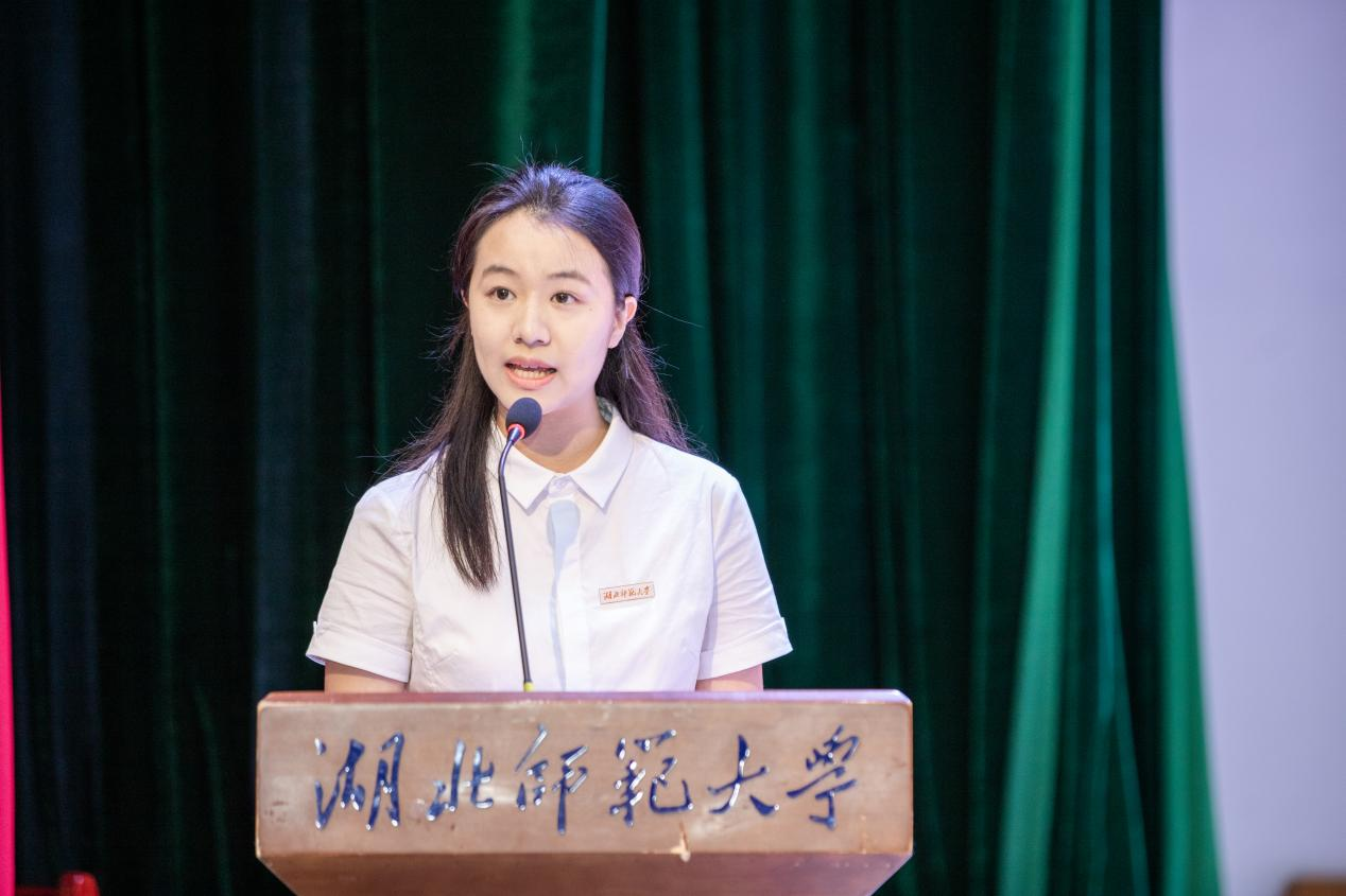 随后,该校首届“荆楚优师计划”学生代表、外国语学院21级冉唐佳羽,“荆楚优师计划”培养学院代表、化学化工学院院长殷国栋,以及神农架林区教育局党组成员沈昌栋依次上台发言。他们以自己的亲身经历和感悟,鼓励新生们树立远大志向,坚定教育信念,努力成为党和人民满意的“四有”好老师。